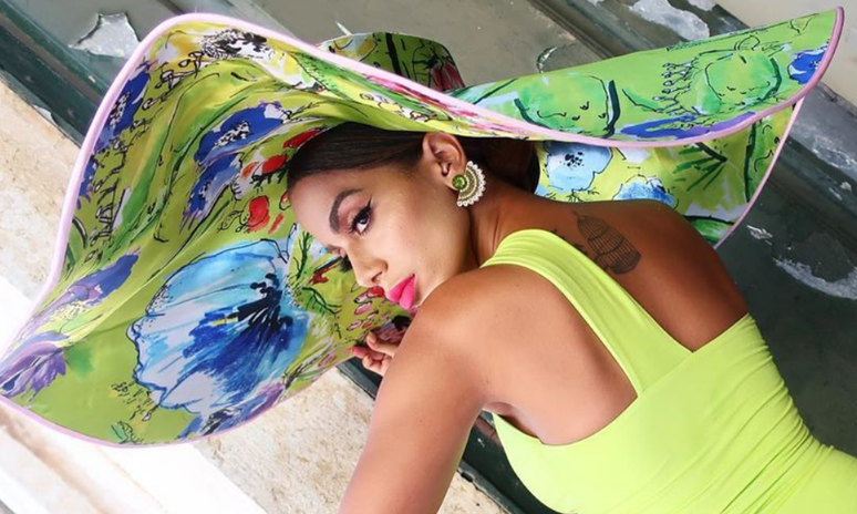 Anitta (Foto: Reprodução/Instagram/@anitta)O vestido em várias de cores, que lembra aplicação de penas,faz clara referência às aves brasileiras. O chapéu poderoso, pele à mostra, incluindo a marquinha de biquíni revelada no maiô neon cavado e decotado, revelam também a sensualidade explícita que a Anitta gosta de imprimir nos looks das músicas.
