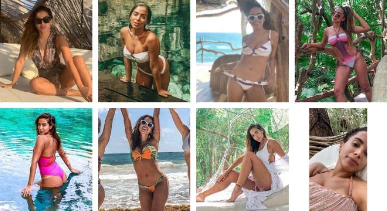 Anitta vestiu oito biquínis e maiôs em viagem de dois dias ao México. "Quero dar closes, tenho só dois dias de folga, mas quero parecer que foram 30", disse a cantora no Stories do Instagram.