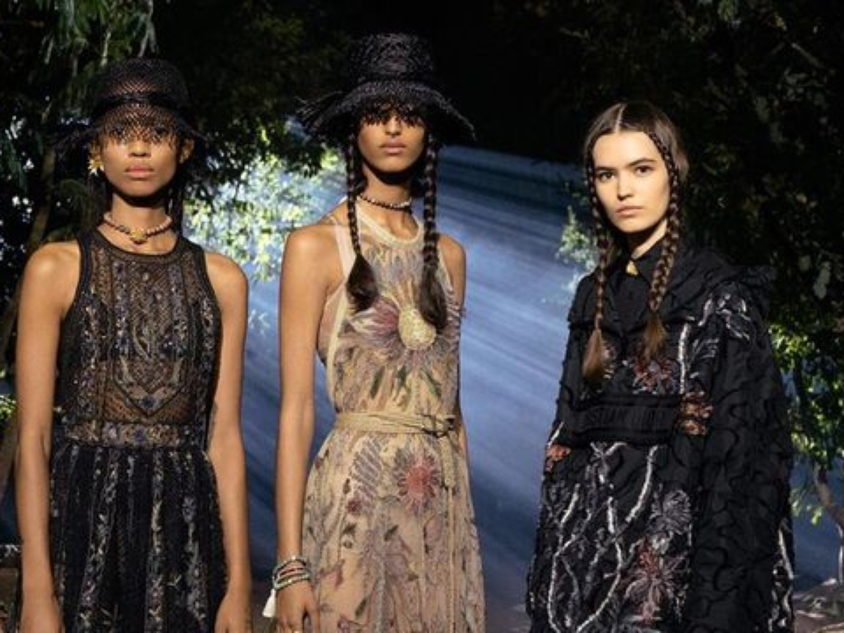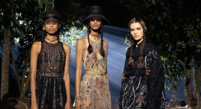 Tranças das modelos da Dior remetem ao penteado da ativista sueca Greta Thunberg. Grife fez um dos apelos mais contundentes da semana, com passarela ornamentada com 160 árvores e coleção inspirada na irmã do estilista, Catherine Dior, florista e membro da resistência francesa durante a Segunda Guerra, que chegou a ser presa.