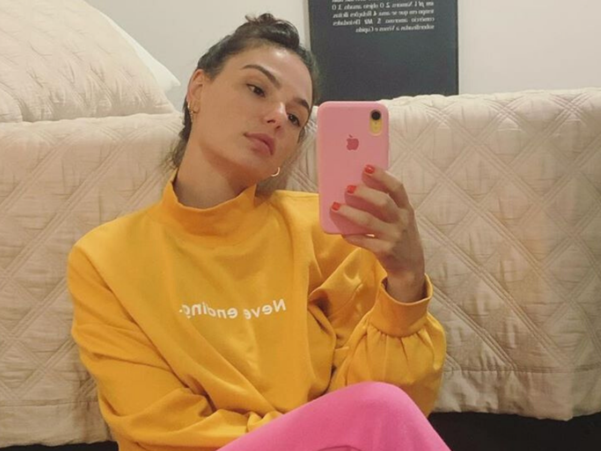 Isis Valverde apostou no conforto do moletom, mas sem perder o estilo. As peças seguem a proposta do tonalismo, ao combinar amarelo e rosa.
