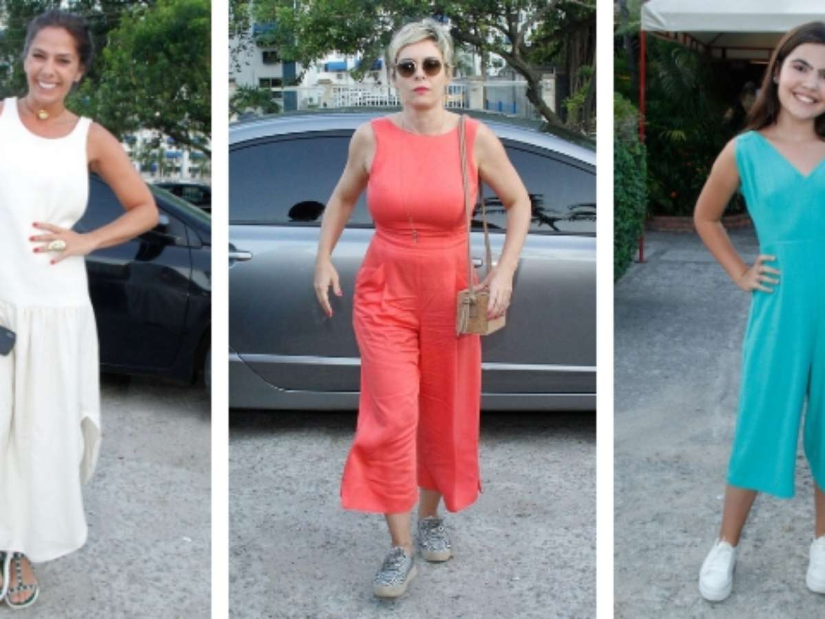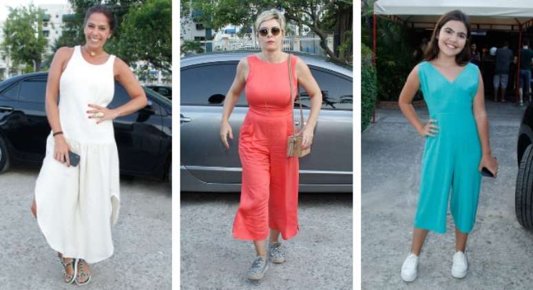 Assim como Regiane, Raphaela Alvittos vestiu macacão pantacourt, mas na cor azul.