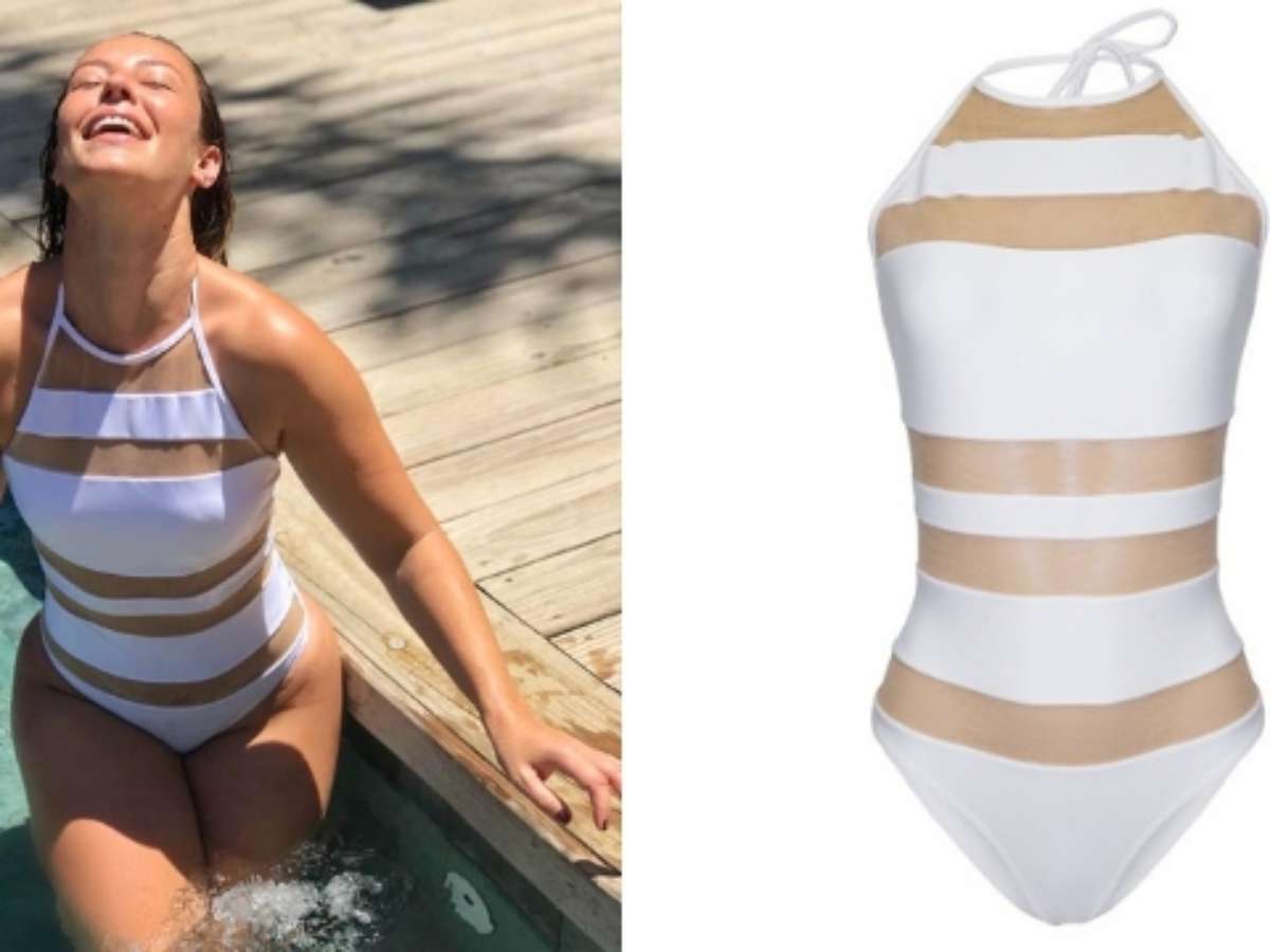 Paolla Oliveira usa maiô com faixas transparentes de R$ 399