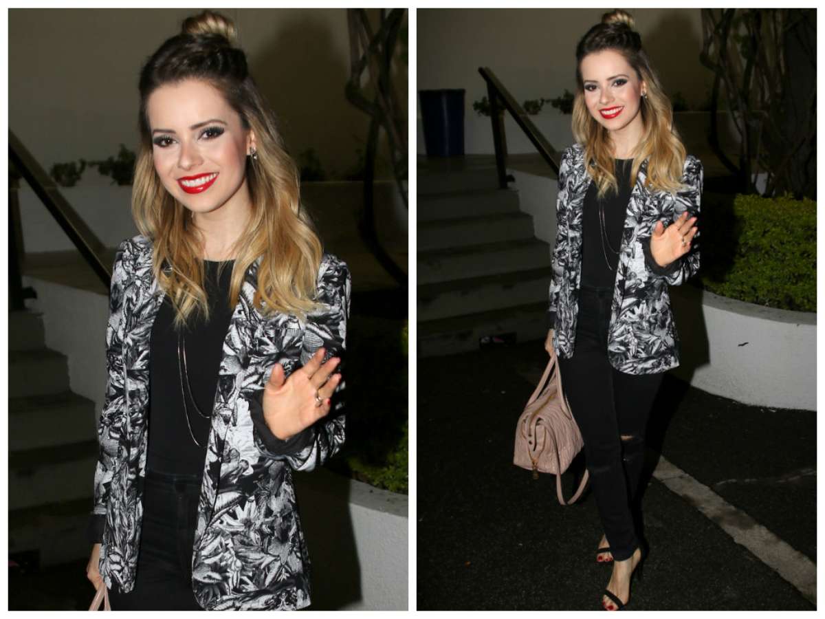 A mistura do formal com o despojado resulta em um look estiloso e atual. Essa foi a aposta da Sandy ao combinar blazer estampado e calça skinny rasgada no joelho. O visual ainda alonga e afina. Os truques para modelar a silhueta são a monocromia (blusa, calça e sandália pretas), que não cria interrupção visual, e as linhas verticais e diagonais da terceira peça aberta e dos colares compridos. Para copiar!