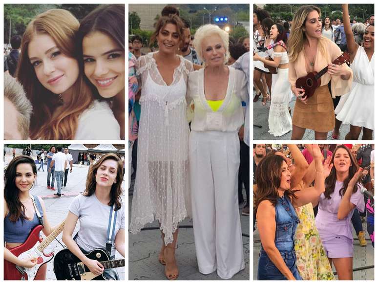 Na gravação, Juliana Paes estava com vestido branco transparente, Ana Maria Braga vestiu macacão branco com top amarelo por baixo, Susana Vieira escolheu longo branco e Arlete Sales combinou camisa branca com calça jeans.