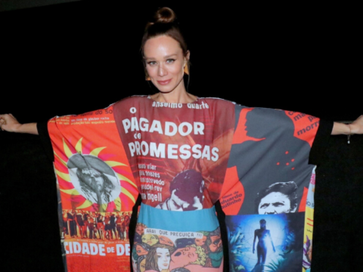 A roupa, uma espécie de caftã, vem com colagem de vários filmes que tiveram repercussão internacional, incluindo "O Pagador de Promessas", dirigido por Anselmo Duarte, único a conquistar a Palma de Ouro, prêmio máximo de Cannes, em 1962. "Celebrar a abertura do Festival do Rio este ano é uma vitória para a cultura nacional. O evento é tão emblemático e quase não aconteceu. Mas nos mobilizamos e colocamos o festival na rua. E seguimos lutando. Nosso cinema é tão rico, tão diverso, tão plural. E histórico. E eu trouxe essa história no meu vestido, no palco comigo", disse em seu discurso.