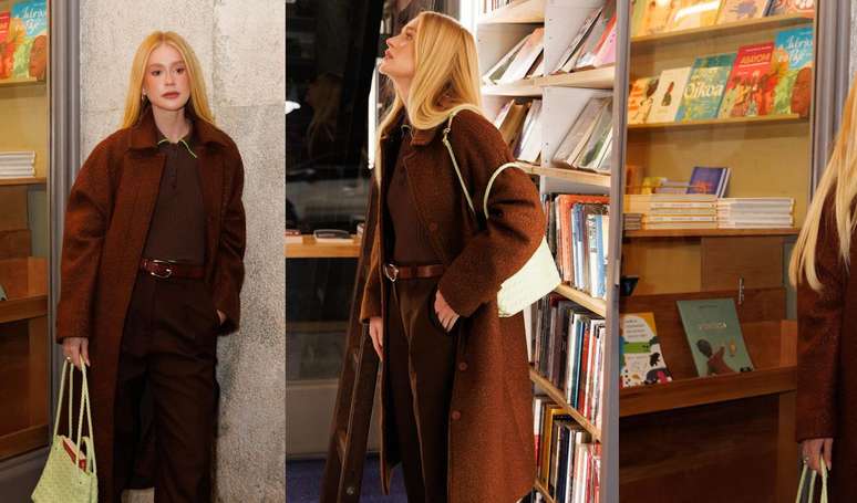 Monocromática, Marina Ruy Barbosa aposta em look todo marrom para prestigiar evento em livraria de SP