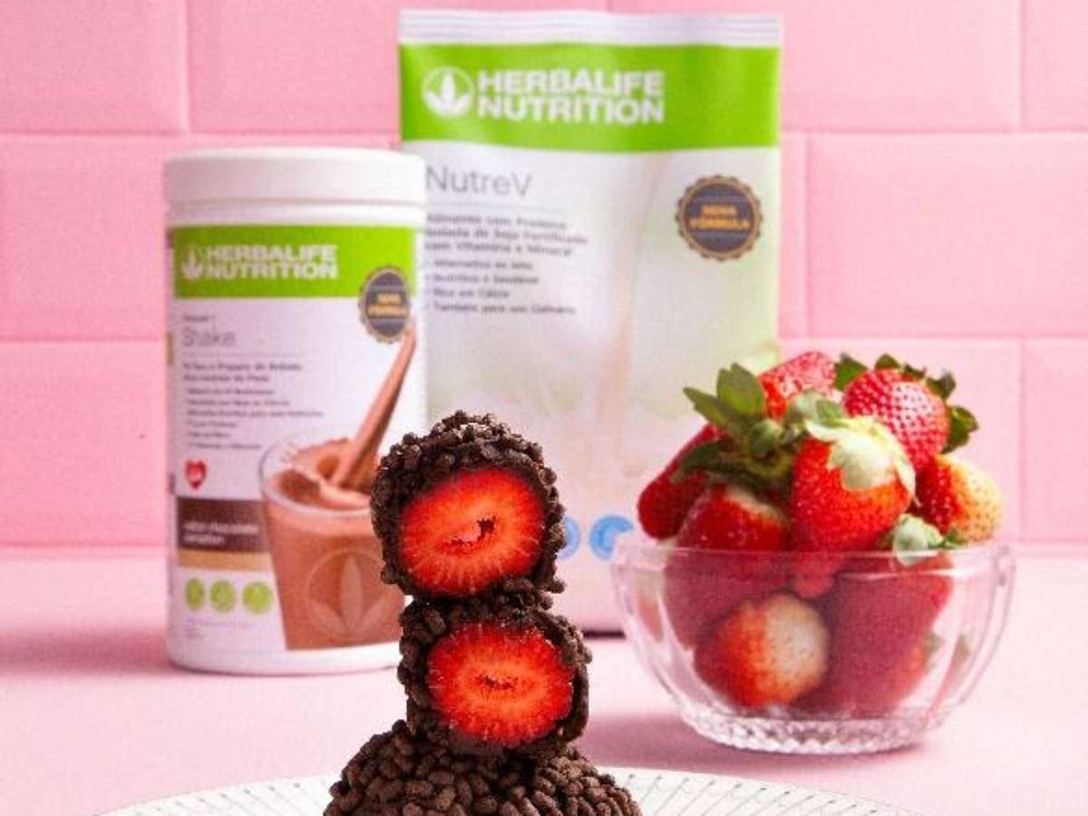 Se você ficou com água na boca vendo as versões de Morango do Amor bombarem nas redes, agora é a sua vez de aproveitar! Esta receita fit foi criada pelo time de nutricionistas da Herbalife e combina o frescor dos morangos com ingredientes nutritivos: o famoso Shake sabor Chocolate Sensation da marca, que fornece 23 vitaminas e minerais, além de uma boa quantidade de proteínas; o NutreV, bebida vegetal à base de proteína isolada de soja; e os crispies proteicos sabor chocolate Protein Crunch, que garantem a crocância. Que tal aproveitar?