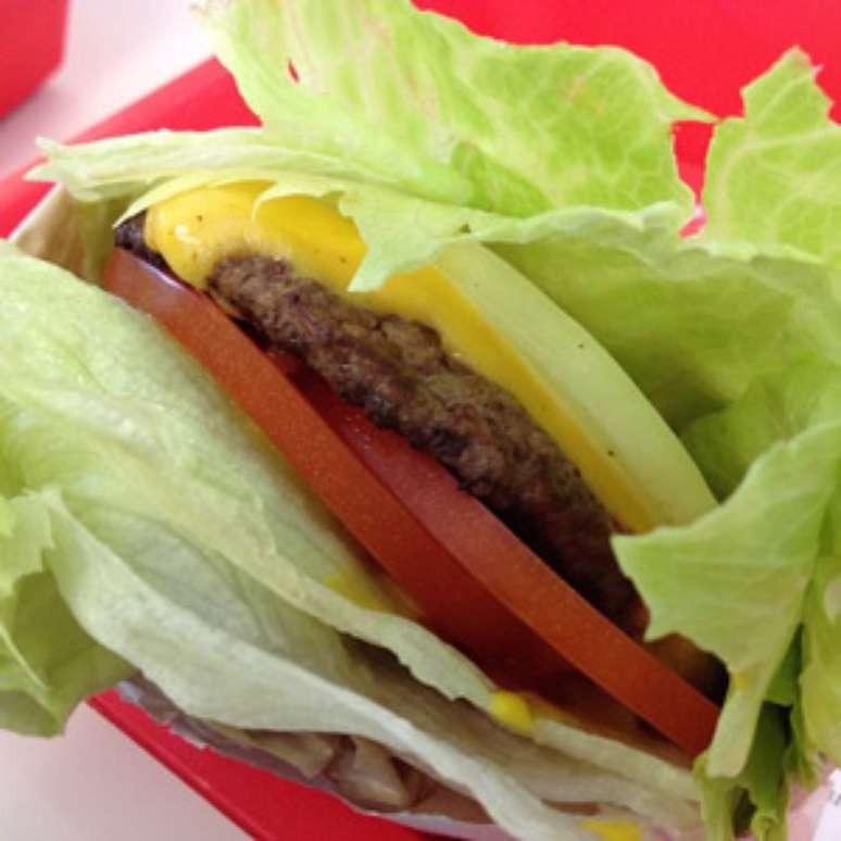 Para quem está de dieta, peça o In-N-Out Protein Style Burger: carne, queijo, tomate e cebola enrolados em fatias frescas de alface.