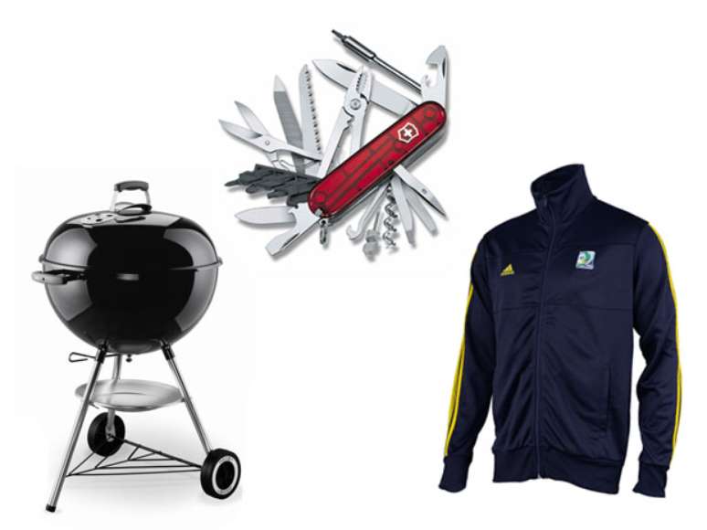 Canivete com lâmina grande e pequena, abridor de latas, saca-rolhas, punção e escariador bainha, serra para madeira, chave de fenda, cinzel, argola de chaves em aço inox, palito, pinças, mini chave de fenda, alfinete, caneta esferográfica entre outras funções. Da Victorinox. Preço sob consulta. SAC: (11) 5584-8188