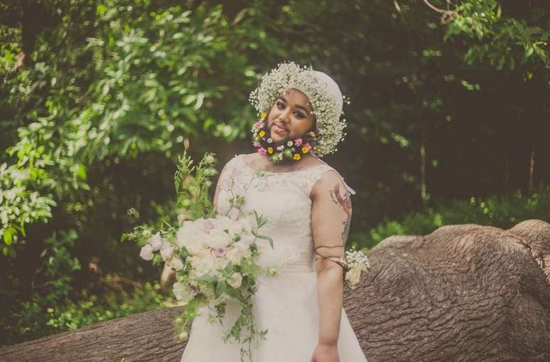 Tenho barba, e daí? Mulher posa de noiva com pelos no rosto