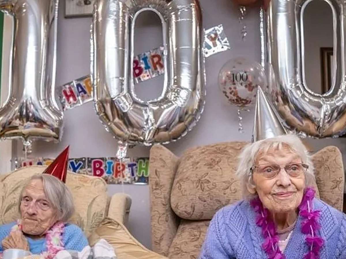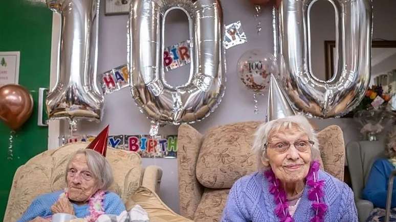 As gêmeas Anne Brown e Florence Boycott se encontraram em casa de repouso para celebrar o 100º aniversário lado a lado