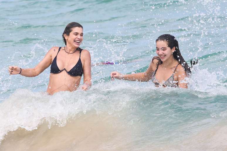 A atriz foi fotografada ao lado da herdeira durante um banho de mar com muita diversão. Mãe e filha apareceram dando risadas enquanto pulavam as ondas do mar.