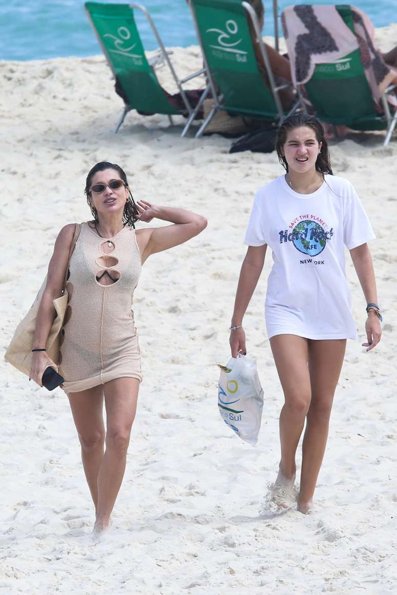 Aproveitando o calor no Rio de Janeiro, Flávia Alessandra resolveu se refrescar na praia neste domingo, 12/03, acompanhada da sua filha caçula, Olivia, fruto do casamento com Otaviano Costa.