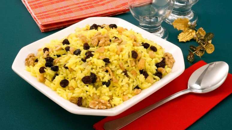 Suculento, este modo de preparo especial do arroz requer uvas passas, cúrcuma e nozes. Com esses complementos, tudo ficará mais gostoso e com aquele saborzinho de Natal. Veja os demais ingredientes necessários: