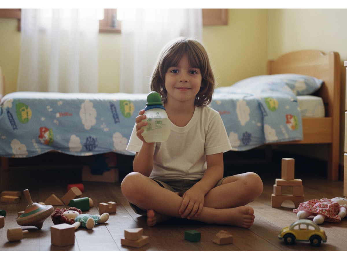 A colônia do "Pedrinho", da linha Natura Criança, trazia uma combinação delicada e acolhedora. As notas de saída de bergamota, lima, mandarina e alecrim abriam a fragrância com frescor, enquanto o coração de lavanda, gerânio, jasmim e muguet revelava suavidade. No fundo, âmbar, musk, cedro e fava tonka garantiam um rastro confortável e inconfundível, ainda hoje facilmente reconhecido por muita gente.