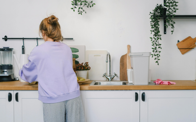 Um dos cantos mais problemáticos da cozinha é a pia. Devido ao contato constante com restos de alimentos, ela é um local ideal para a acumulação de bactérias e também vestígios de calcário incrustado.