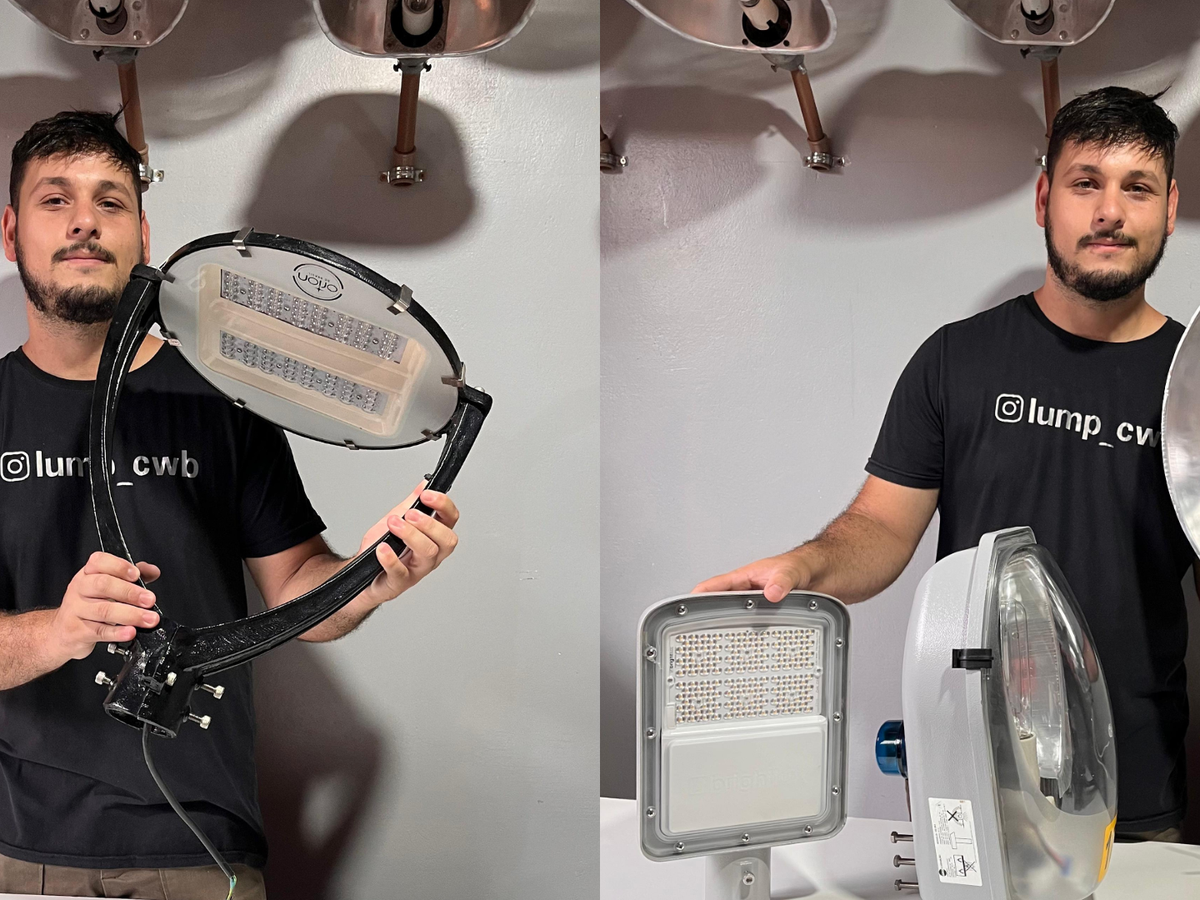 “Para algumas luminárias que vêm de uma cidade da região metropolitana de Curitiba, eu fiz um protocolo de doação. Você pode fazer um termo de doação na prefeitura mesmo, onde eu solicito as luminárias. Fiz esse processo e demorou uns 4 meses, mas consegui”, detalha.