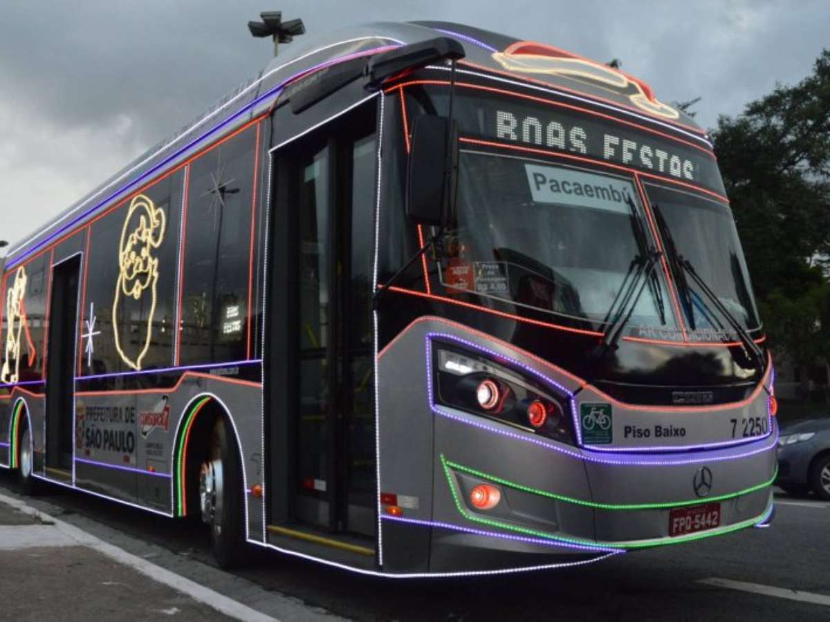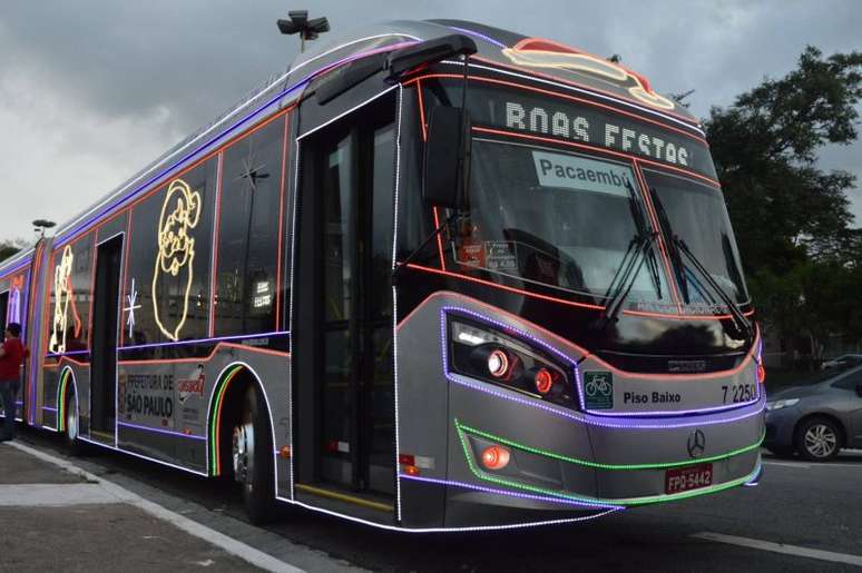 A iniciativa é uma parceria da SPTrans com as empresas operadoras do sistema municipal de transporte público, e disponibilizou mais de 90 coletivos com luzes, decoração natalina e motoristas vestidos de Papai Noel.