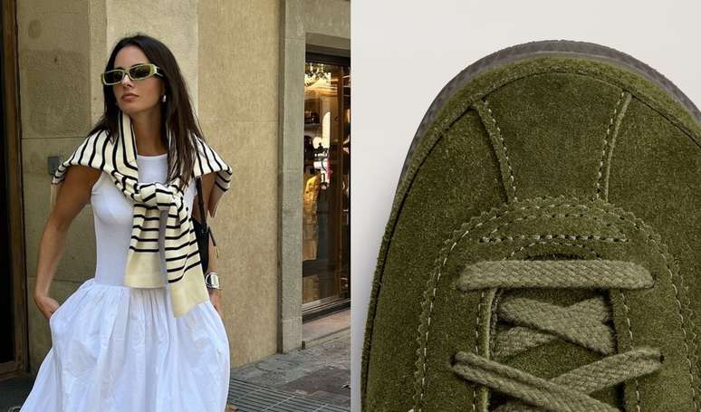 Esses tênis vêm em um verde-oliva ou camuflagem superelegante, bem verão e fácil de combinar com peças de linho para dar um toque de frescor e leveza aos nossos looks.