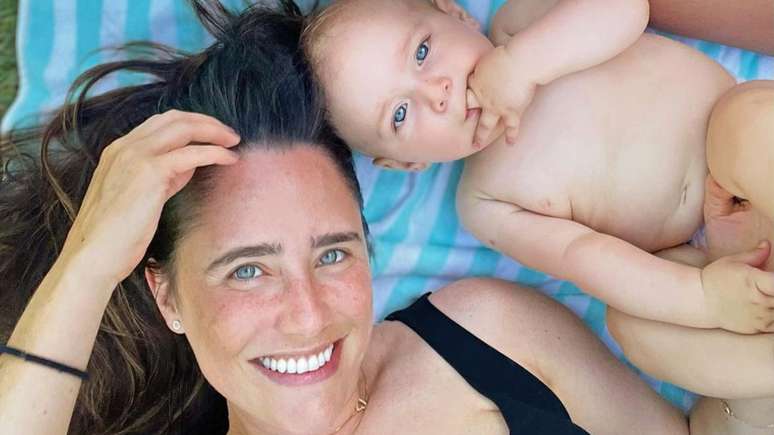 Em seu perfil oficial no Instagram, Fernanda Vasconcellos, que conta com mais de 2,2 milhões de seguidores na plataforma digital, compartilhou uma imagem belíssima feita com a câmera do celular em que aparece deitada num gramado ao lado do filho e do marido.