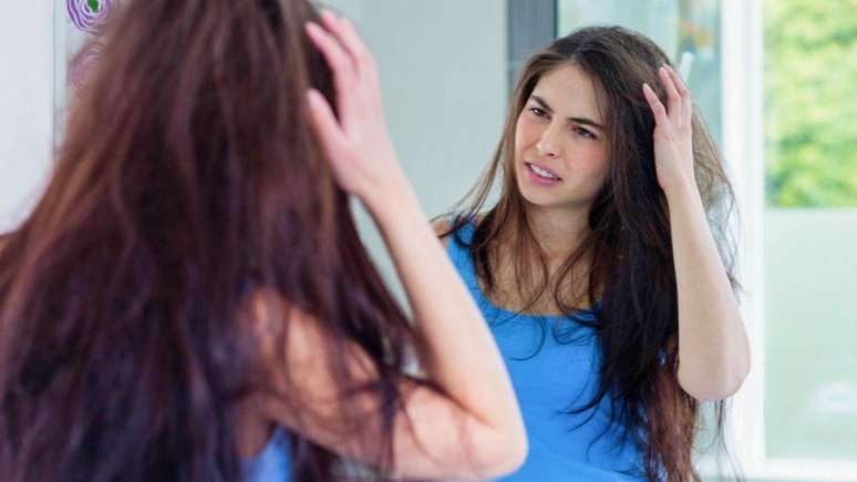 Se precisar secar o cabelo com pressa, use o jato morno e mantenha uma distância de 15 centímetros. Isso protege o couro cabeludo e evita que o calor excessivo estimule a oleosidade excessiva na raiz.