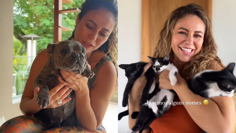 Nos Stories, Paolla fez questão de apresentar três felinas: Heleninha — em homenagem à sua personagem na novela 'Vale Tudo' —, Pororoca e Mina. Focando nos cachorros, ela revelou que adotou a bulldog Pandora após a fêmea ser resgatada pela ONG Cão Nosso. De acordo com Oliveira, a peludinha era explorada para gerar filhotes. "Ela é cheia de medo e treme muito. Mas vai ficar bem", esclareceu.