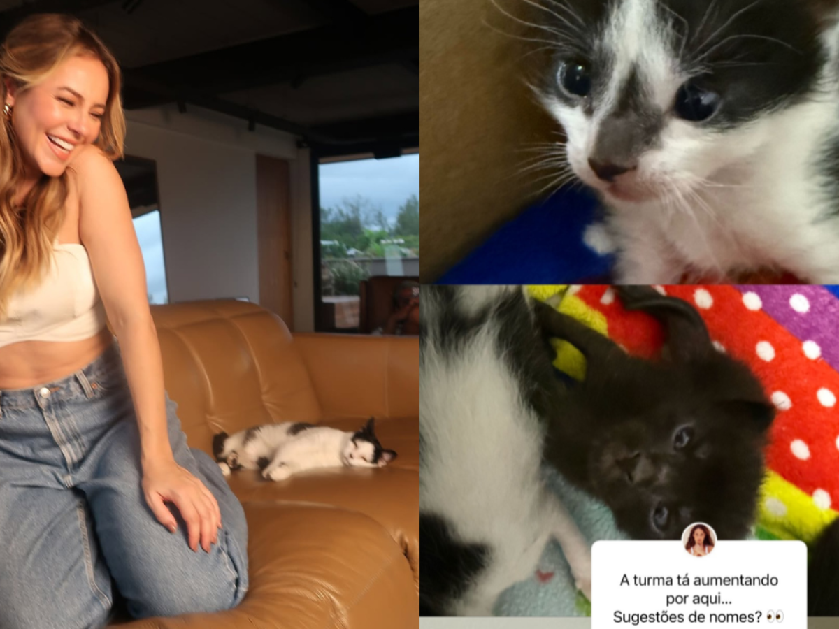 Na última quinta-feira (10), a atriz, que agora estrela a personagem Heleninha Roitman, em 'Vale Tudo', novela da TV Globo, fez uma postagem no Instagram, pedindo a ajuda dos fãs para nomear seus três novos gatinhos. "A turminha está aumentando por aqui", anunciou na legenda.