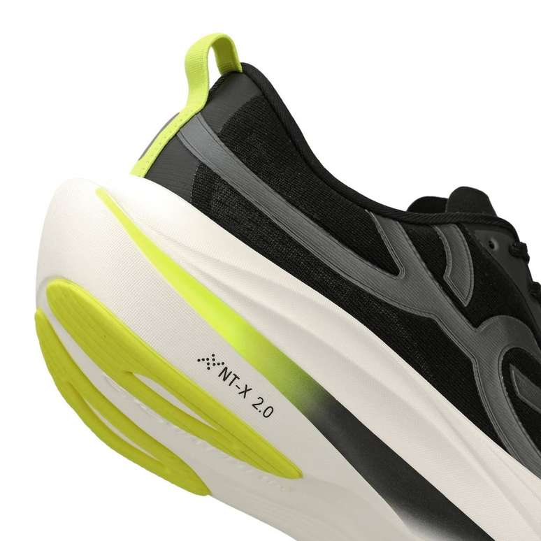 Na entressola, a tecnologia NT-X 2.0 utiliza TPE expandido com nitrogênio, proporcionando amortecimento, leveza e retorno de energia. Já o solado traz borracha Gripper, que aumenta a durabilidade e a aderência durante a corrida.