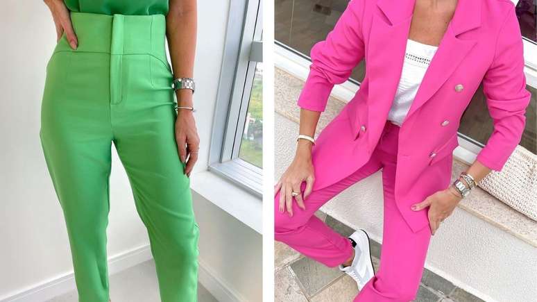 Claro que os looks de alfaiataria com peças de tons mais neutros ou pastéis também são incríveis - mas, se você quiser ousar um pouco mais, as cores vibrantes podem ser uma ótima escolha! Com elas, o look fica bem diferente e alegre, né?