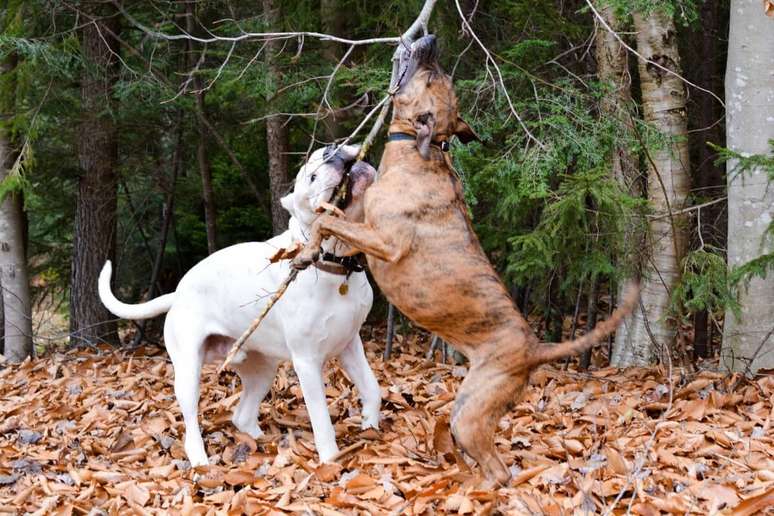 Tanto o dogo argentino quanto o pitbull são raças extremamente ativas e enérgicas, necessitando de exercícios diários para manterem-se saudáveis e equilibrados. No entanto, o primeiro tende a precisar de atividades físicas mais intensas e prolongadas devido ao seu porte maior e histórico de cão de caça.
