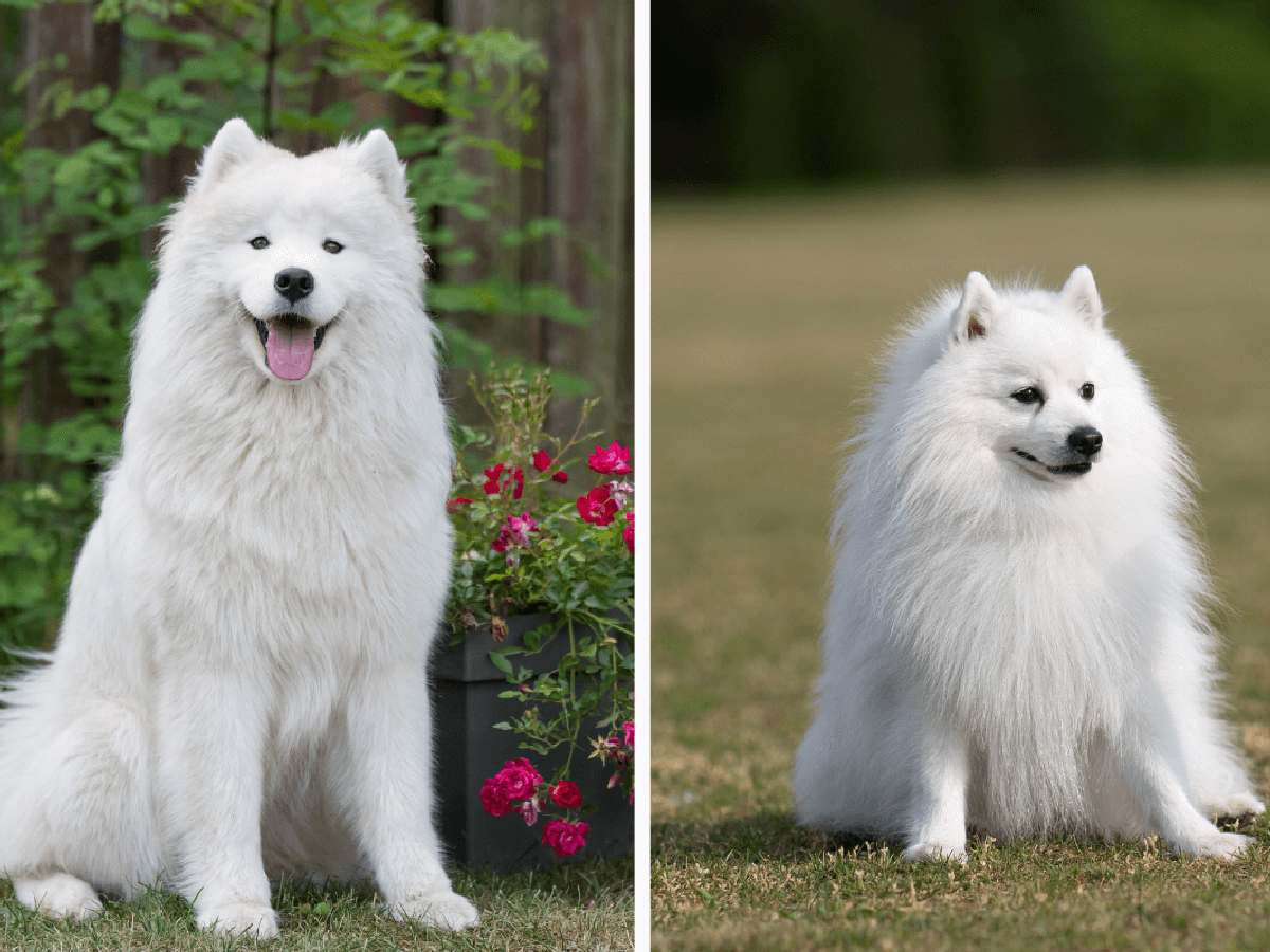 Abaixo, confira algumas diferenças entre os cães das raças samoieda e spitz japonês!