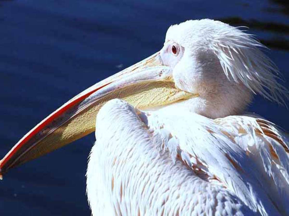 Pelicano-branco – 47 cm – Regiões costeiras e interiores do Hemisfério Norte; Bico com bolsa que ajuda a capturar peixes. Expectativa de vida: 10 a 25 anos