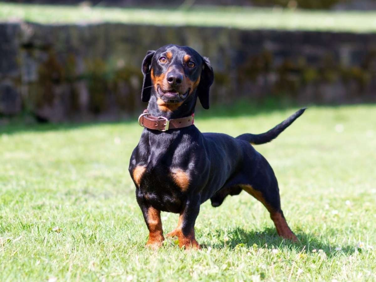O Dachshund, conhecido por aí como cachorro salsicha, é uma verdadeira fofura. Esse peludo de pernas curtas, coluna alongada e corpo rebaixado consegue encantar qualquer um por onde passa. Além disso, o Dachshund costuma ser um cãozinho bem leal ao tutor e simpático com outras pessoas.