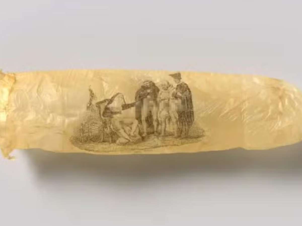 O preservativo, confeccionado a partir do apêndice de ovelha, apresenta uma freira parcialmente despida que 'interage' com três padres. Todos estão em posição, digamos, sugestiva. Ao lado da cena, uma inscrição em francês reforça o tom provocativo da peça. O objeto não apenas ilustra práticas e crenças do passado, mas também oferece uma janela para compreender o contexto cultural e social do século XIX. Portanto, é uma imagem que revela detalhes curiosos sobre os costumes e preocupações de uma época marcada por tabus e mudanças sociais. O item, com cerca de 20 centímetros de comprimento, é considerado uma raridade entre os artefatos relacionados à sexualidade humana.