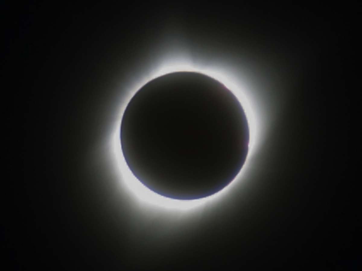 Mas quando a luz do Sol é totalmente bloqueada pela Lua, então chamamos este evento de eclipse solar total. Assim, vemos apenas alguns raios de luz da estrela ao redor da sombra do Sol, Dependendo de onde o espectador estiver, poderá ver um ou outro - por isso, híbrido.