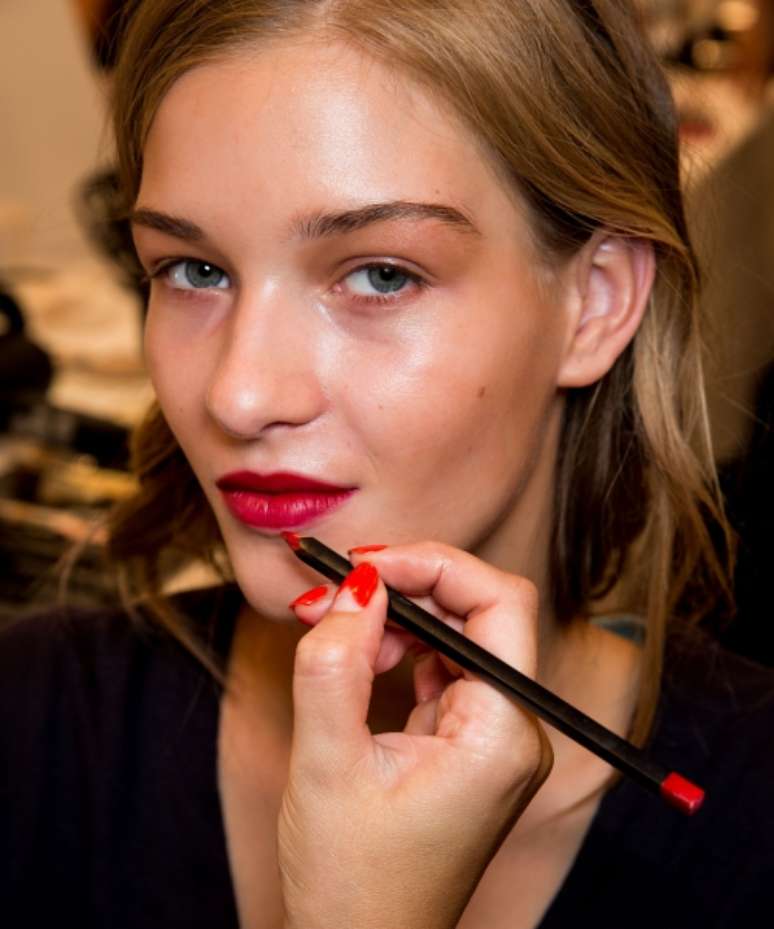Contornar os lábios não só vai deixar um acabamento perfeito como também fazer com que o batom fique muito mais tempo na boca. Escolha um lápis labial da mesma cor do batom, contorne os lábios e, em seguida, preencha a região. Sua boca vai estar prontinha para receber o pigmento principal.