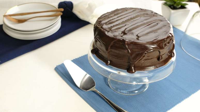 Desenforme o bolo quando estiver frio e corte ao meio. Adicione o recheio, tampe com a outra metade da massa. Espalhe a cobertura com uma espátula em todo o bolo. Sirva em seguida.