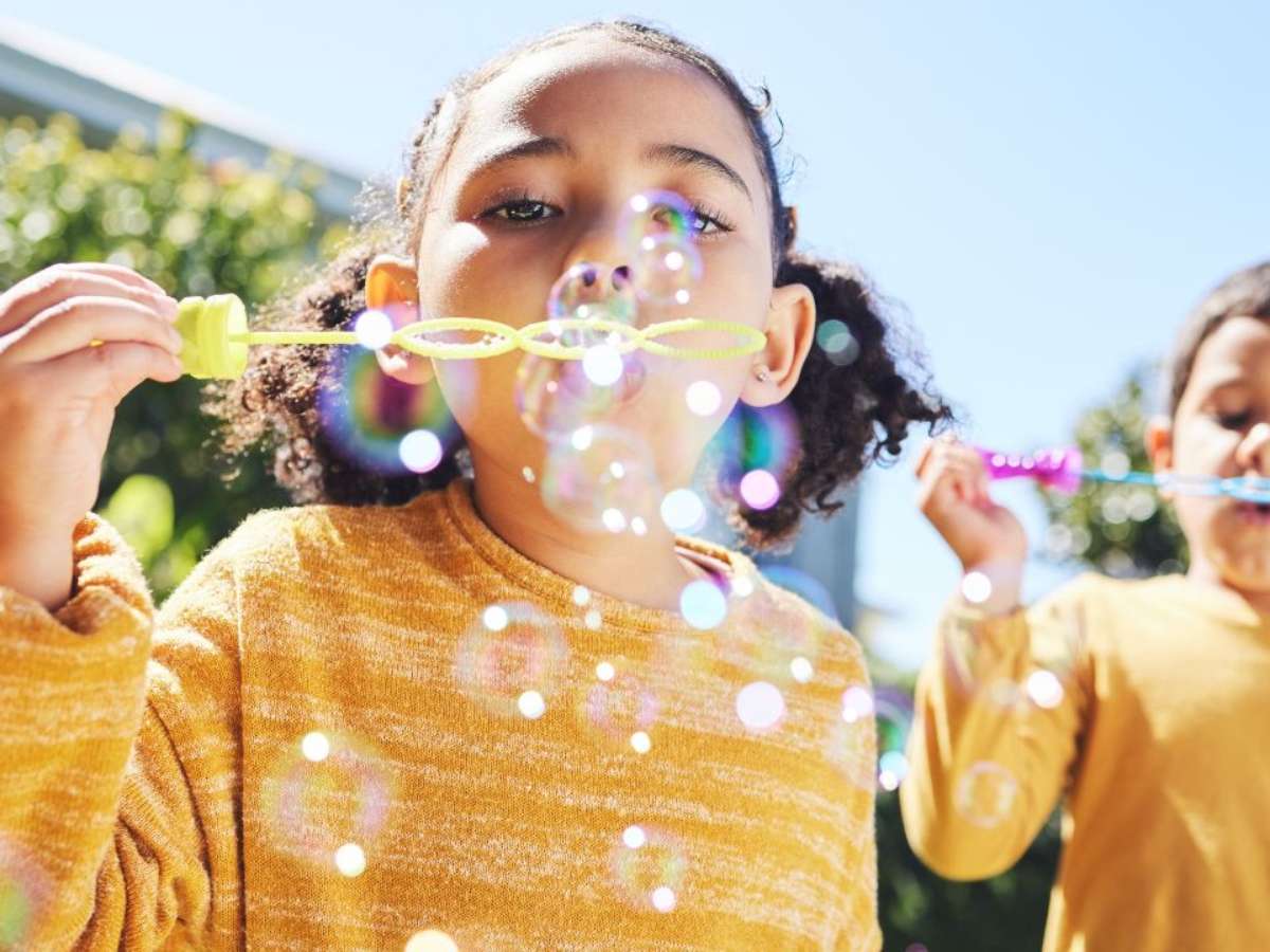 A brincadeira tão querida pelas crianças envolve foco e atenção no momento presente, sabia? Pois é! Além disso, as cores e o movimento suave das bolhas podem ter um efeito relaxante visualmente.