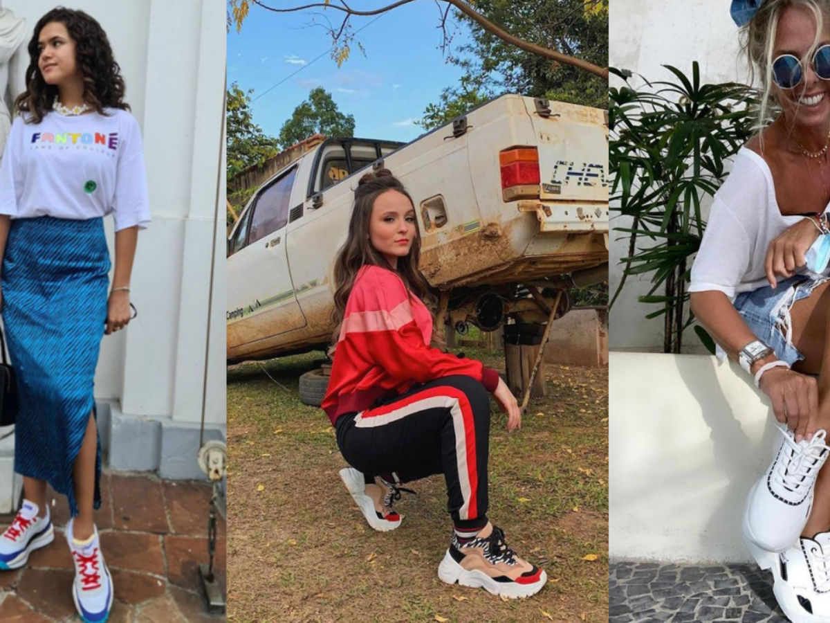 O calçado é queridinho pelas celebridades, que apostaram na peça em diversos looks. Maisa e Iza combinaram o tênis com saias. Dando um ar esportivo para a peça com caimento especial.