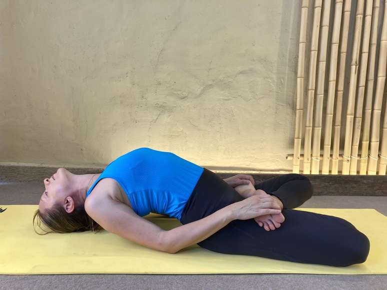 As torções são excelentes para a saúde da coluna vertebral. Ao praticar você cria espaço entre as vértebras, massageia os nervos sensoriais e motores, revitaliza o sistema nervoso, fortalece os pulmões e purifica os órgãos abdominais. Faça 30 segundos em cada lado.