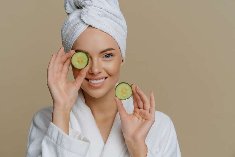 O vegetal também ajuda a hidratar a pele. "Quando aplicado topicamente, os pepinos podem fortificar as células para que possam se manter hidratadas e trabalhar nos níveis mais altos", explica a médica. A área dos olhos costuma ser mais sensível e fina, logo, a hidratação é extremamente benéfica para ela.