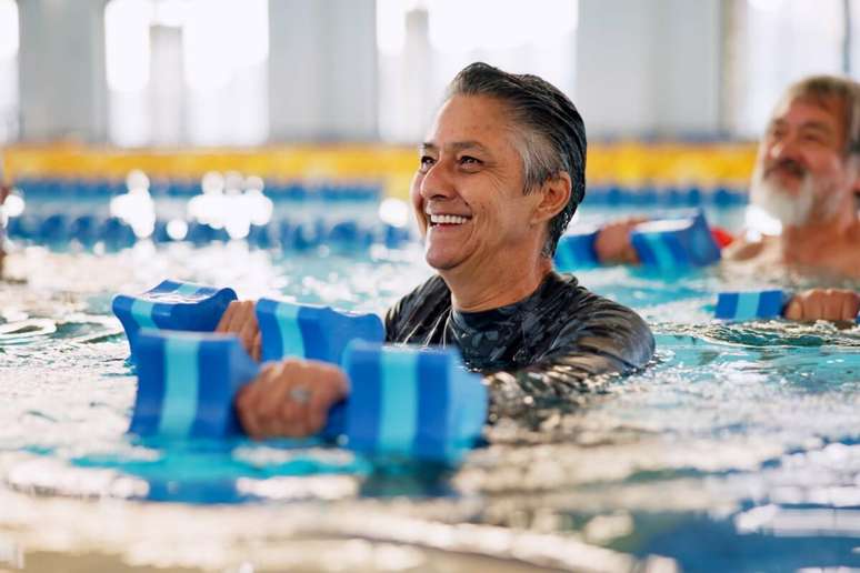 Exercícios aquáticos podem ser até quatro vezes mais exigentes do que os realizados em solo, devido à resistência da água. O uso de aparelhos, como halteres e bicicletas aquáticas, intensifica o fortalecimento muscular, respeitando os limites físicos de cada paciente.