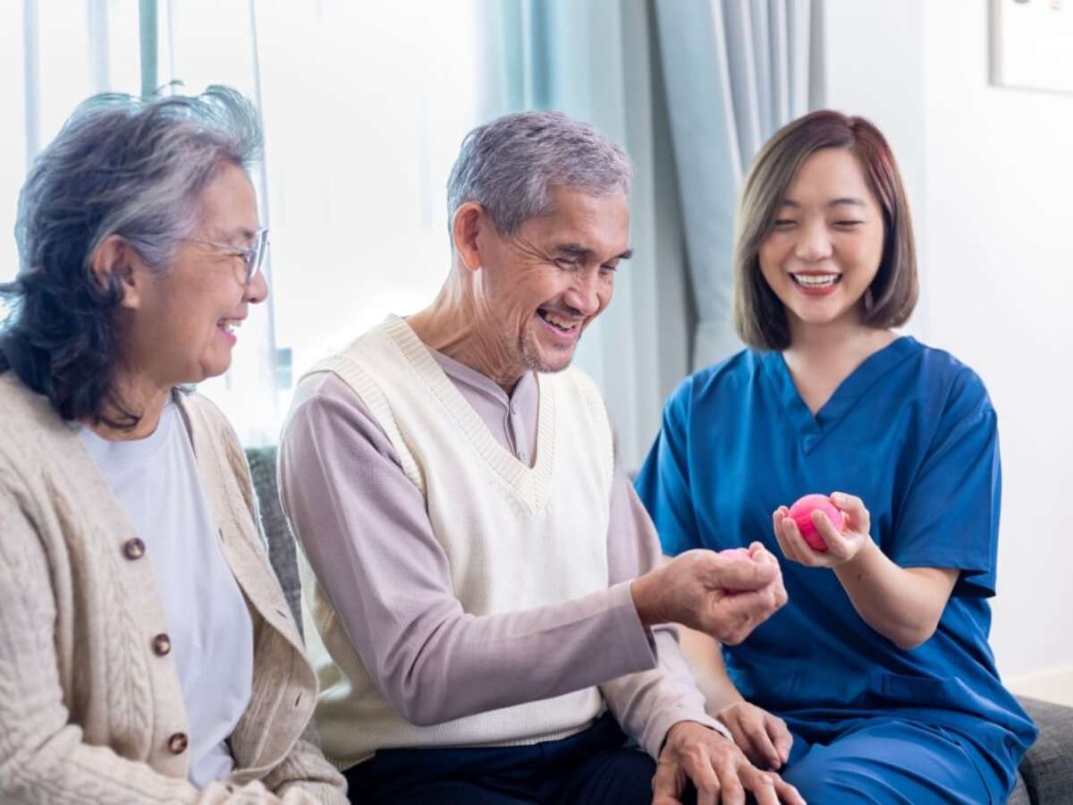 Esse exercício fortalece as mãos e melhora a coordenação motora fina, útil para tarefas como abrir potes ou segurar objetos. Para fazê-lo, aperte uma bolinha macia (como de borracha) com a palma da mão, segurando por 5 segundos. Faça de 8 a 10 repetições em cada mão.