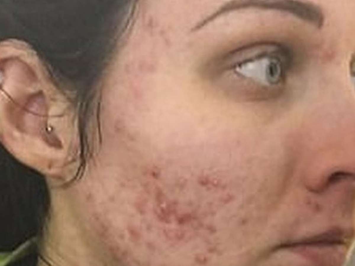 Inicialmente ela pensou ser uma reação alérgica à maquiagem ou ao produto que usava para limpar o rosto. Mas a acne se espalhou pelo queixo, testa, costas, ombros e peito. "Foi brutal."