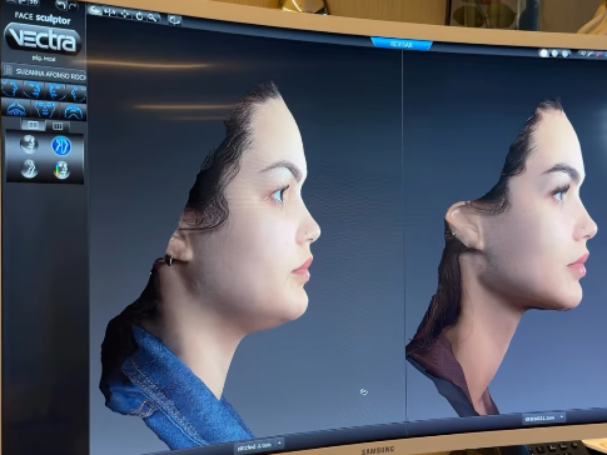 "A relação dos lábios: ela tinha os lábios mais para dentro, hoje tem o lábio mais projetado. E todo o contorno facial: mandíbula, queixinho, olha a projeção do queixo como deixei. Linda."