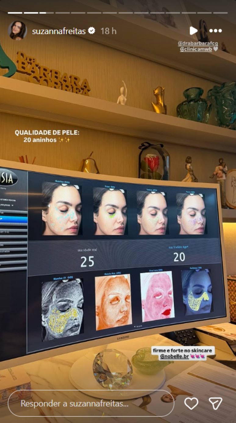 Segundo Suzanna Freitas, o skincare consistente contribuiu para melhorar a qualidade da pele durante o processo de emagrecimento.