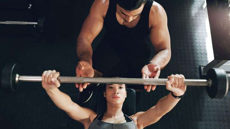 Peça auxílio: No supino com barra, ter um parceiro ajuda a chegar à falha com segurança.