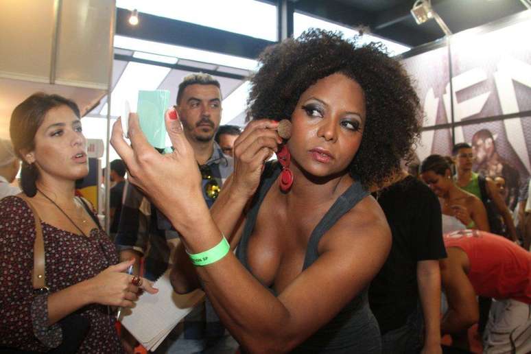 A 14ª edição da feira Rio Sports Show, no Rio de Janeiro, tem atraído famosos desde o seu início, na última sexta-feira (27). Neste domingo (29), dia de encerramento do evento, foi a vez de Adriana Bombom dar o ar da graça e presentear os visitantes com um decote profundo