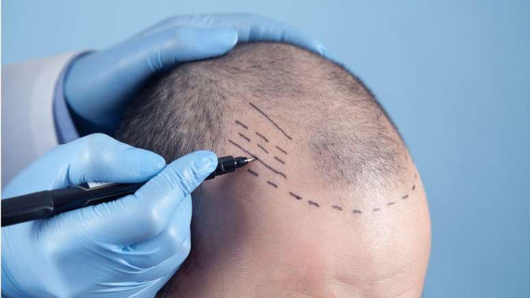 Para áreas onde o folículo já morreu completamente, a solução é o transplante. A técnica FUE (Extração de Unidades Foliculares) é a mais moderna e discreta atualmente.