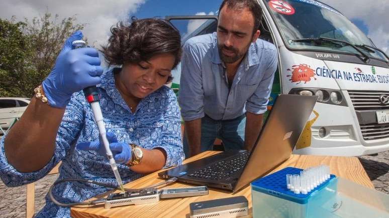 Uma empresa chamada Oxford Nanopore desenvolveu um leitor portátil, pouco maior que um celular, para sequenciar o material genético em questão de minutos.